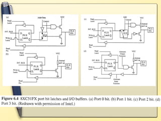 The document discusses the 8051 microcontroller. It lists advantages of microcontroller-based systems such as lower cost, smaller size, and higher reliability compared to microprocessor-based systems. It describes some 8051 family members and compares their features such as ROM type, RAM size, and number of timers. It also discusses important components of the 8051 like ROM, RAM, I/O ports, timers, and serial port. The document provides block diagrams of the 8051 internal architecture and pinout. It describes the functions of various pins and registers.