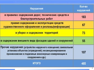 Документ описывает основные виды нарушений, выявленных с 2 по 8 июля 2014 года. Основное внимание уделяется объединению административно-технических инспекций. Информация о нарушениях представлена в структурированном виде.