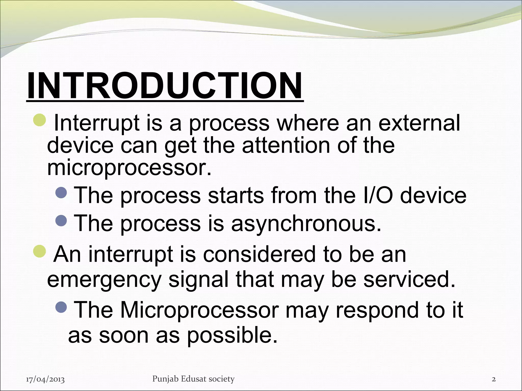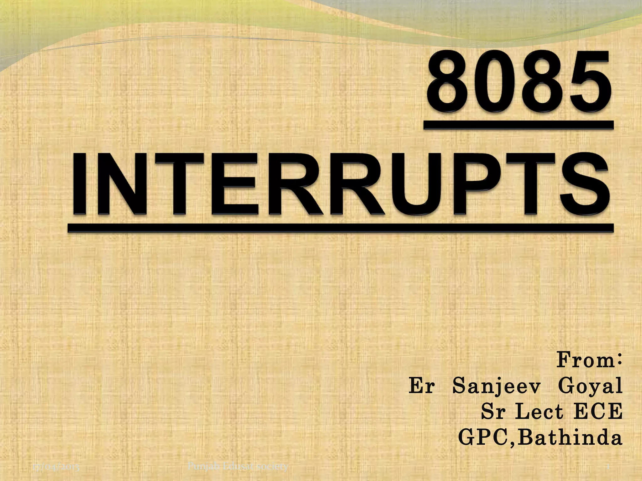 The document discusses interrupts in the 8085 microprocessor. It describes how interrupts work, including how the 8085 handles different types of interrupts like maskable, non-maskable, vectored and non-vectored interrupts. It provides details on the interrupt handling process, interrupt priorities, the interrupt mask and how individual interrupts can be enabled or disabled.