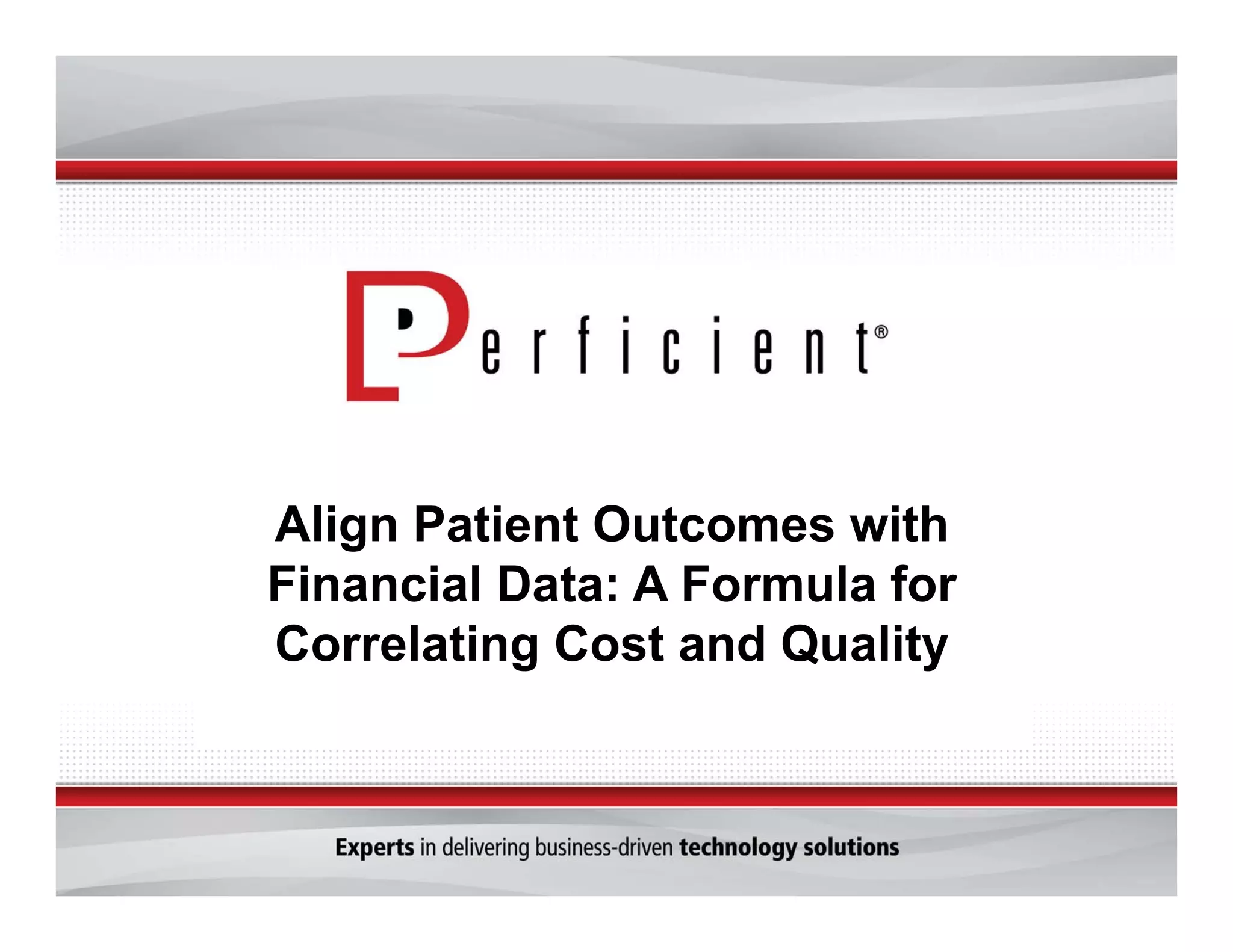 Perficient is an IT consulting firm that helps clients implement business technology solutions. The document discusses Perficient's healthcare solutions and services, including business intelligence, ERP, mobile platforms, and its Oracle partnership. It then provides biographies of two speakers, Lesli Adams and William Bercik, before outlining a presentation on using data and analytics to understand healthcare costs and their relationship to quality of care.