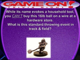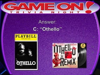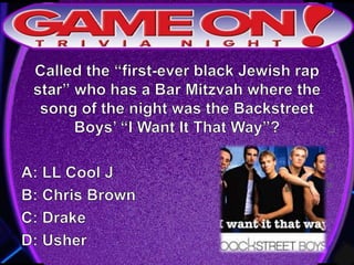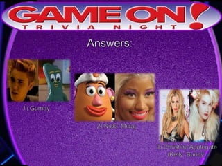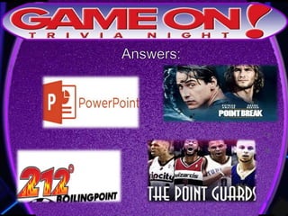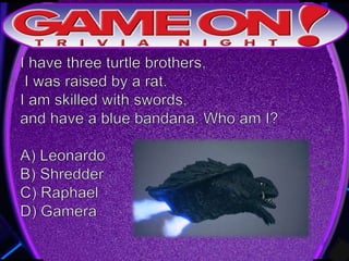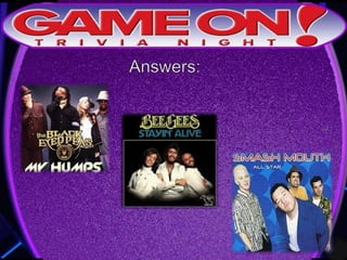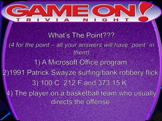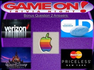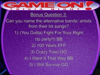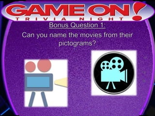 Teams are instructed to add their photo and name to the GameOn Trivia Facebook page to earn an extra point. The trivia rules state that teams must come up with a name, answer questions on the front of the answer sheet which will be collected, and answer 5 bonus questions on the back which will also be collected. No cellphones are allowed during the trivia and teams are encouraged to have fun and showcase their knowledge. A 5 minute break is announced for participants to grab drinks and food.