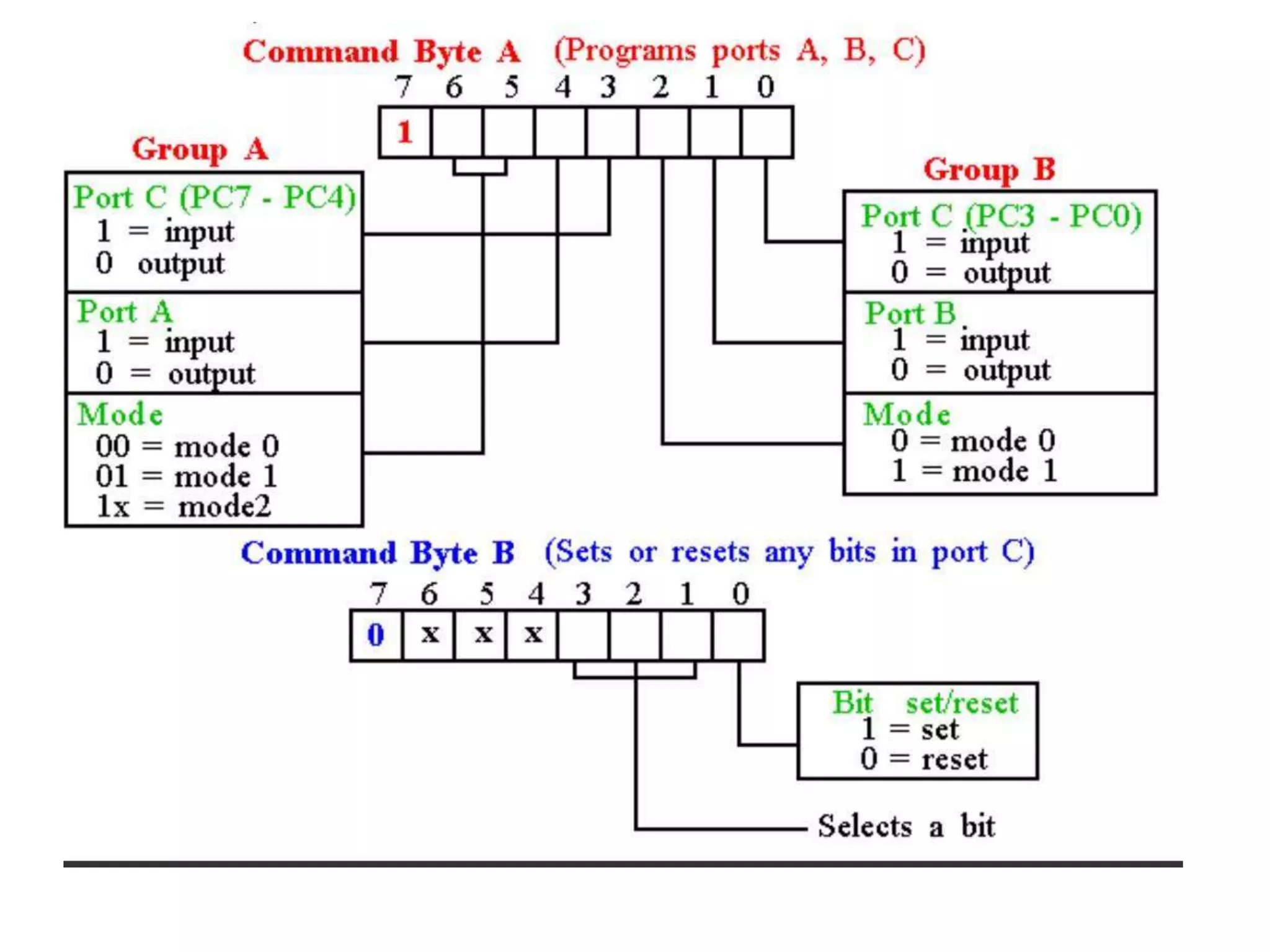 • If both port A and B are initialized in mode 0,the two halves of port Ccan