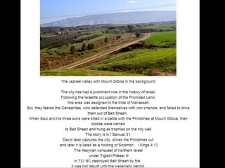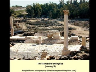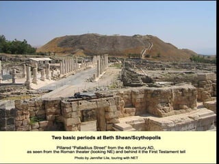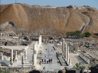 Archaeologists have excavated the ruins of an ancient Roman city in the Golan Heights, uncovering layers containing the remains of a governor's house, streets, and other structures. Columns at the site are believed to have fallen during an earthquake. The excavations also found artifacts from the Middle Bronze Age.