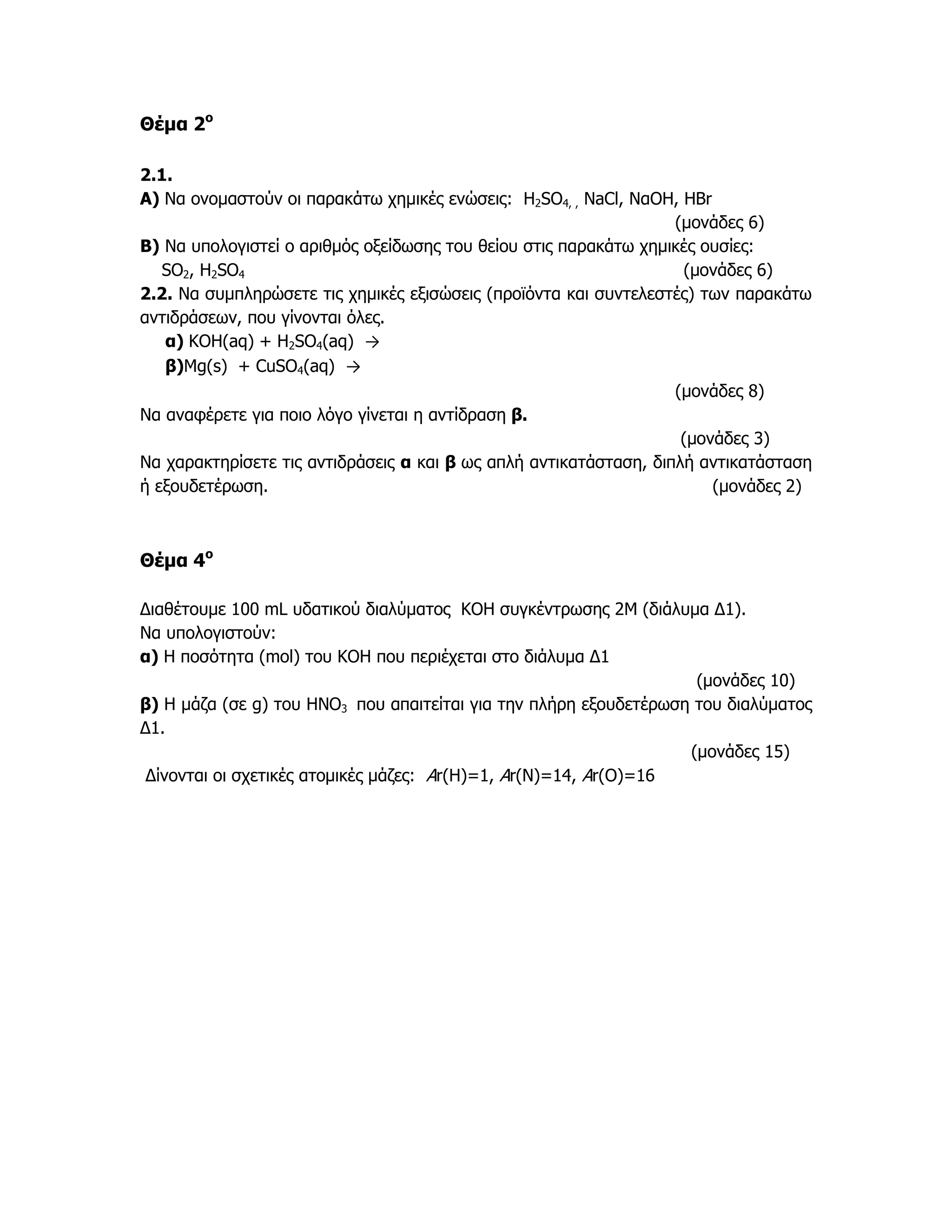 2.2. Να συμπληρώσετε τις χημικές εξισώσεις (προϊόντα και συντελεστές) των παρακάτω