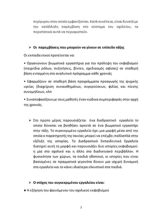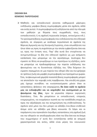 εκδήλωσης μορφών βίαιης συμπεριφοράς μέσα στο σχολείο, αλλά