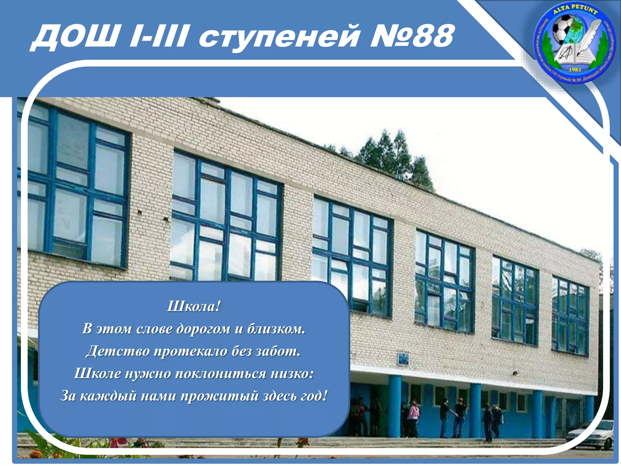 Документ представляет собой отчет о деятельности школы I-III ступеней № 88, включая информацию о числе учащихся, учителей и достижениях в учебном процессе. Школа занимает V место среди школ района, а учащиеся и учителя достигли значительных результатов в олимпиадах, конкурсах и творческих проектах. Также упоминаются успехи в спортивных соревнованиях и творческих кружках.