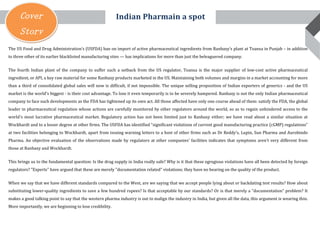 The document discusses the implications of the US FDA's ban on Ranbaxy's plant in India for pharmaceutical exports, highlighting a broader issue of regulatory compliance affecting multiple Indian companies. It raises concerns about the safety of India's drug supply and calls for fundamental changes in quality control practices to regain access to lucrative markets like the US. Additionally, it outlines the economic situation in Zambia, mentioning its resources and trade dynamics, and provides an overview of Facebook's demographic shifts as it matures.