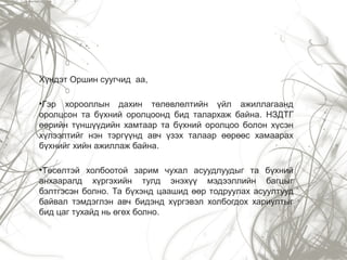 Ашиглалтын шаардлага хангахгүй нийтийн зориулалттай орн сууцны барилгыг буулг... PPSX