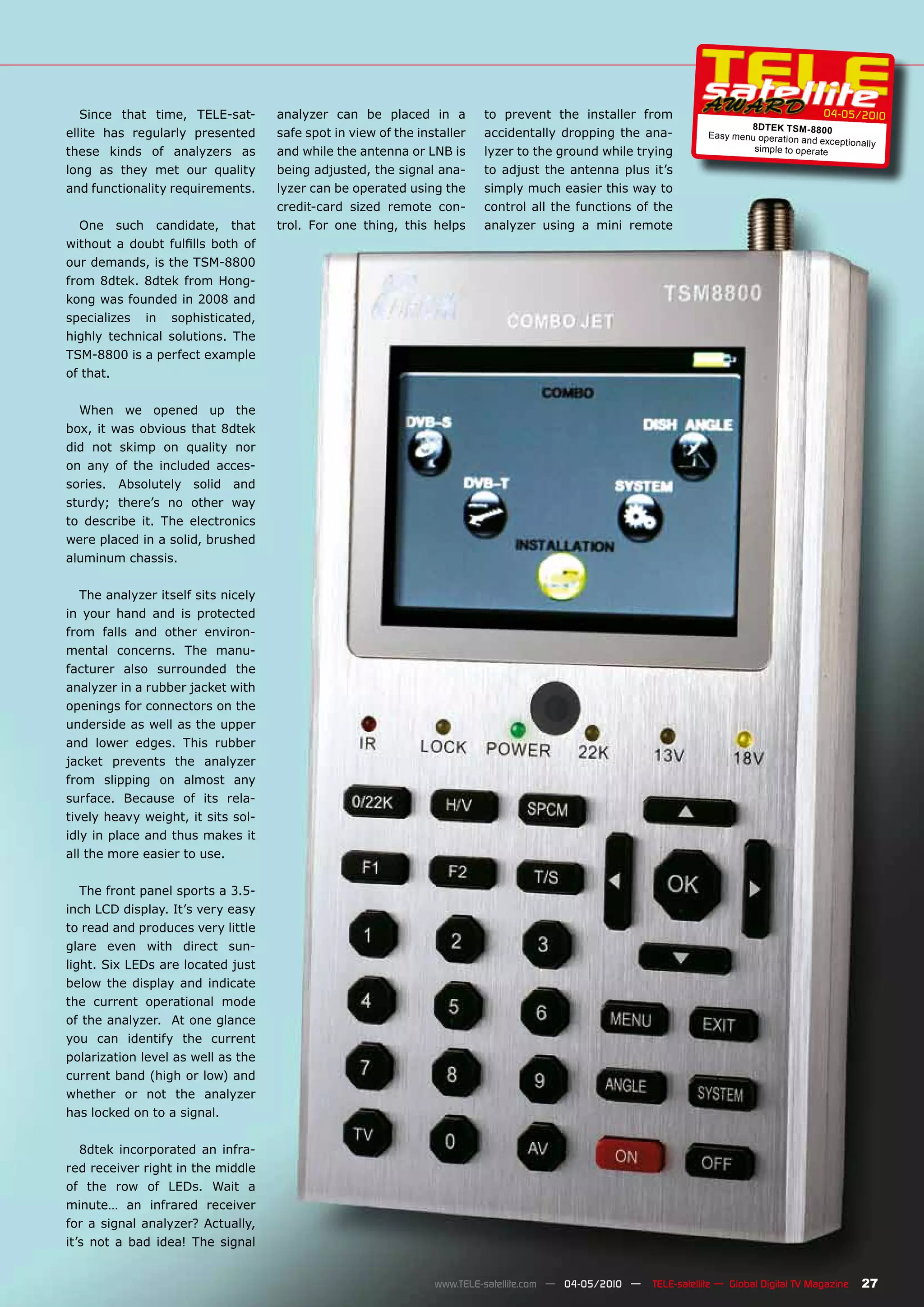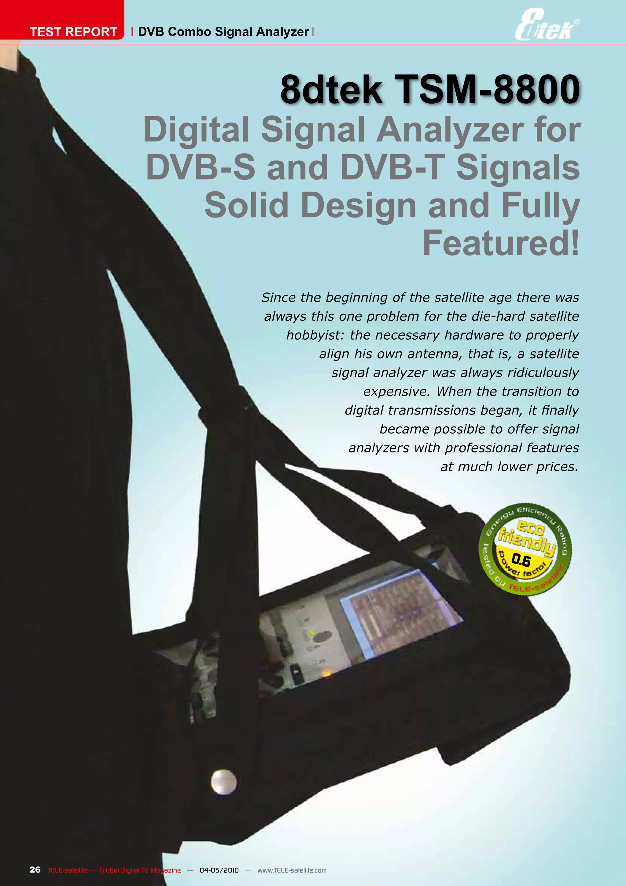 - Is a solidly built, easy to use analyzer for setting up satellite and terrestrial antennas