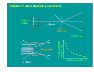 1. It summarizes Rutherford's alpha scattering experiment and what it revealed about the nuclear structure of atoms.