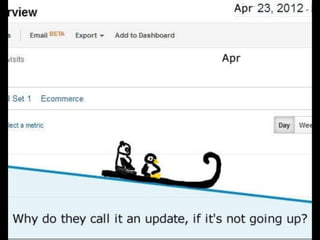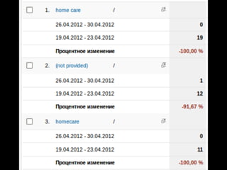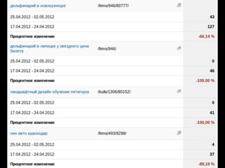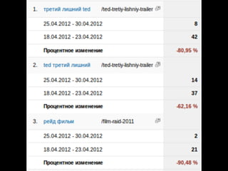 Документ обсуждает последние изменения в алгоритмах Google, включая антип spam-алгоритм 'Пингвин', введенный 24 апреля 2012 года. В нем представлены методы борьбы с спамом и анализ влияния на позиции сайтов, включая примеры плохих и хороших анкор-листов. Также описаны ошибки в обнаружении фильтров и шаги для выявления причин фильтрации трафика.