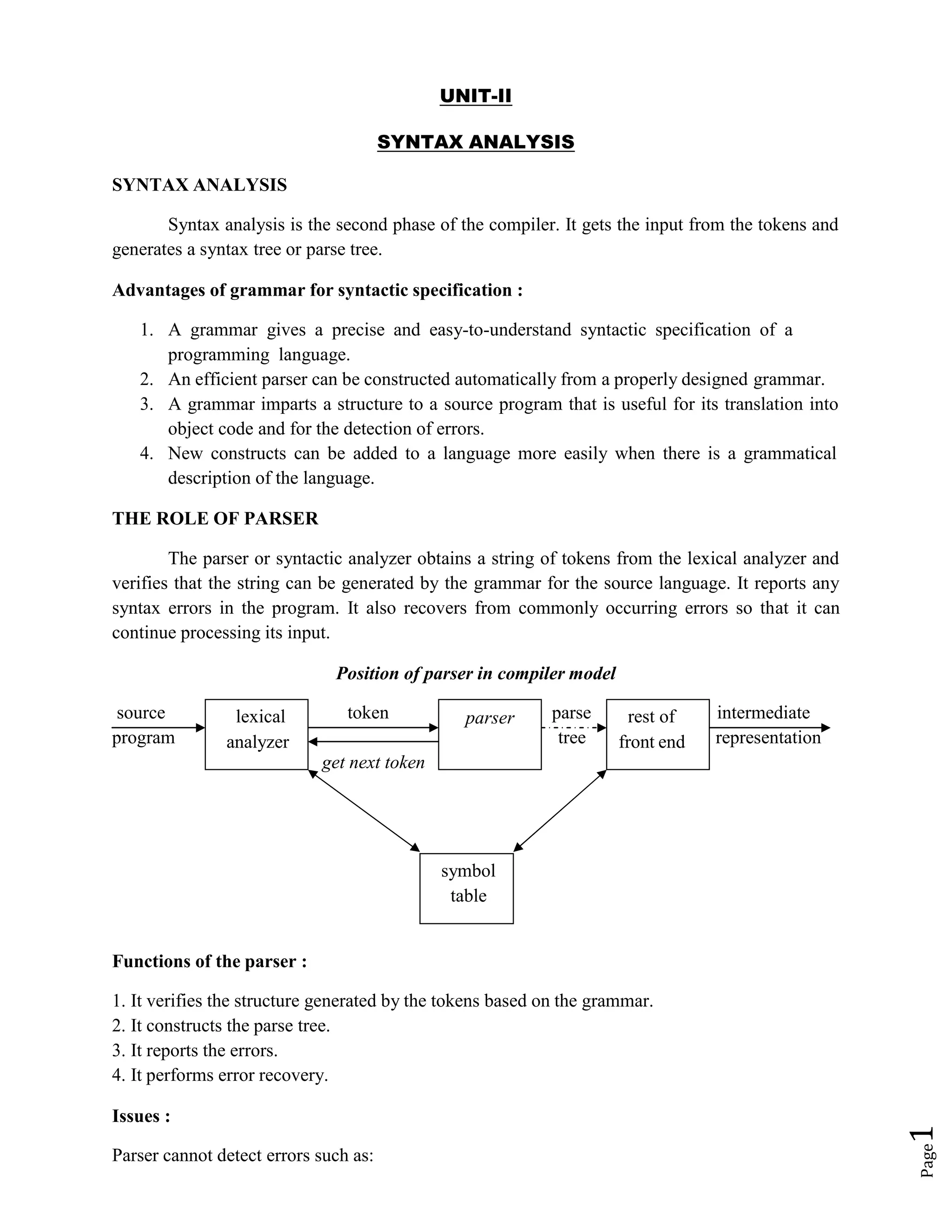 1. The role of the parser is to verify the structure of tokens based on the grammar and construct a parse tree while reporting any errors.