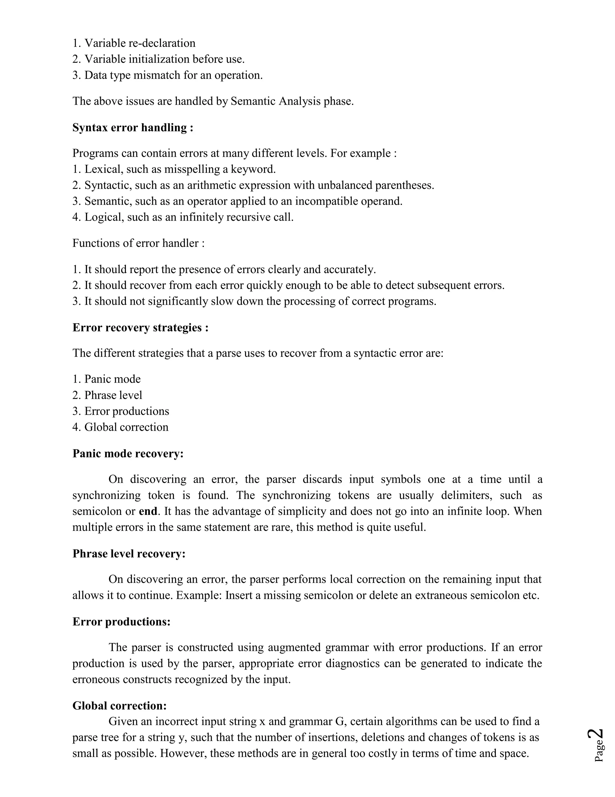 2. Context-free grammars are used to describe the syntactic structure of programming languages and consist of terminals, non-terminals, a start symbol, and productions.