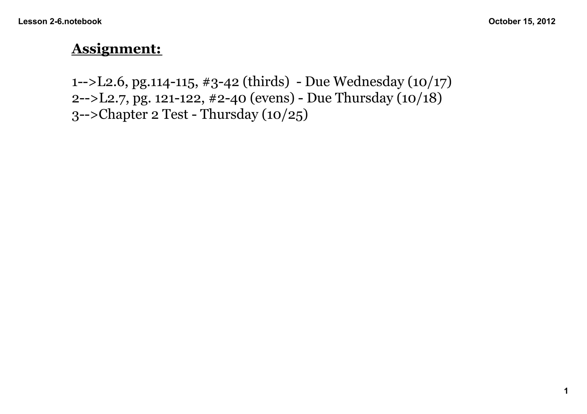 This document contains assignments and math lesson content for Lesson 2.6. It includes: