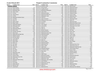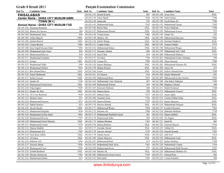 This document appears to be a list of students' results from the Grade 8 exams administered by the Punjab Examination Commission in 2013. It includes the roll numbers, names, and total scores of 401 students who took the exam at GHSS City Muslim Town (M-1) in Faisalabad. The scores are either numerical values or indicators like "FAIL" to show if a student passed or failed the exam.