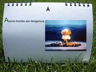 Atomic bombs are dangerous and costly to produce, occupying over 15,000 square miles of land. While they provide advantages in war, nuclear weapons destroy lives instantly and cause harmful radiation, negatively impacting public health. Though nuclear tests produced impressive explosions, the loss of life and long-term effects of radiation make atomic bombs an unacceptable option for modern warfare or deterrence.