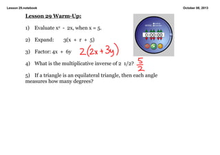 1>Set 29 (odds) Due Tomorrow [10/9]](https://image.slidesharecdn.com/8thprealg-l29-131008100013-phpapp01/85/8th-pre-alg-l29-1-320.jpg)