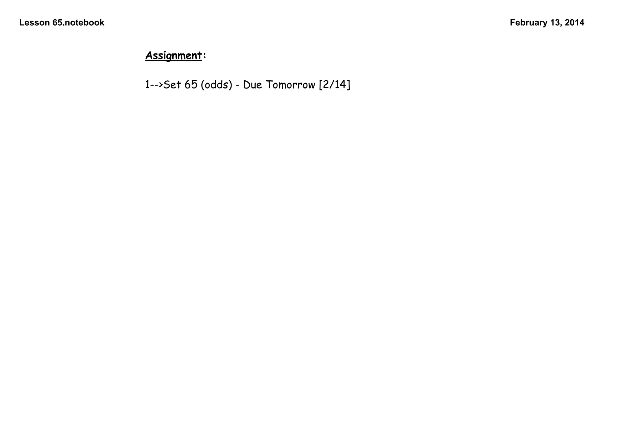 The document contains notes from a math lesson on February 13, 2014. It includes an assignment that is due the next day, a warm-up section with 5 math problems, and information on indirect measurement techniques using proportional relationships and similar triangles. Examples on the topic are provided from page 443 of the lesson material.
