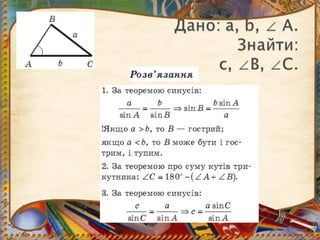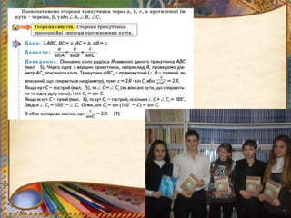 - поглибити тасистематизувати знання учнів про теорему синусів,