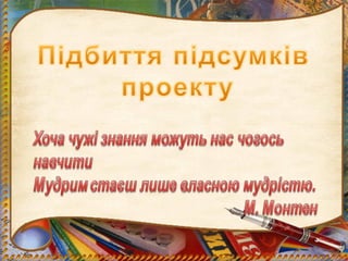 • Ппроект пропонуєтьсядля реалізації з учнями 9 класу