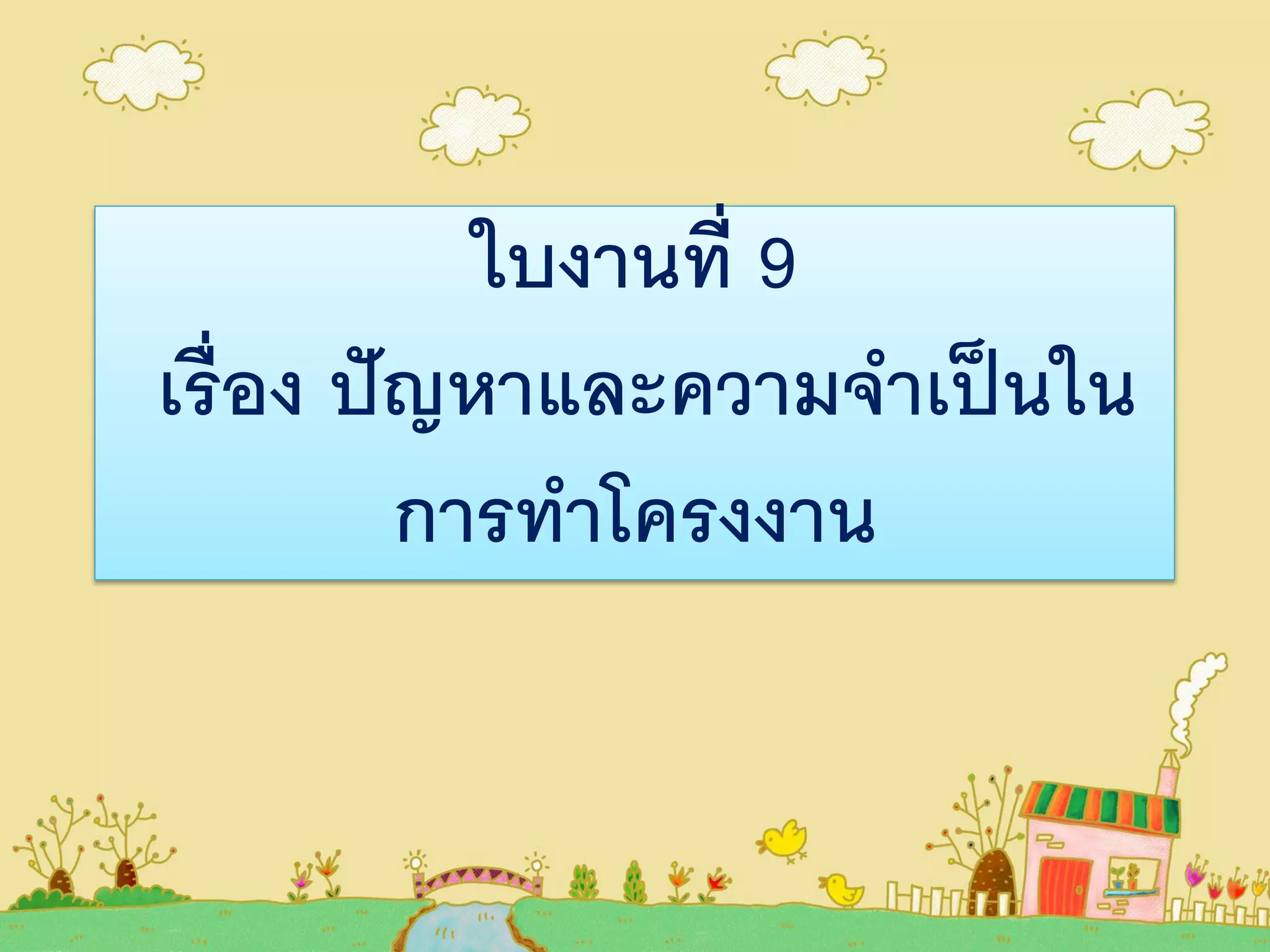 ใบงานที่ 9 เรื่อง ปัญหาและความจาเป็นใน การทาโครงงาน