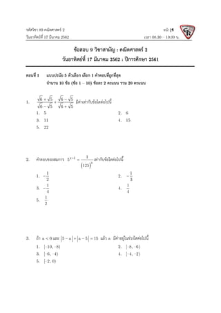 [คณิตศาสตร 2 : 17 มี.ค. 2562 : 1]