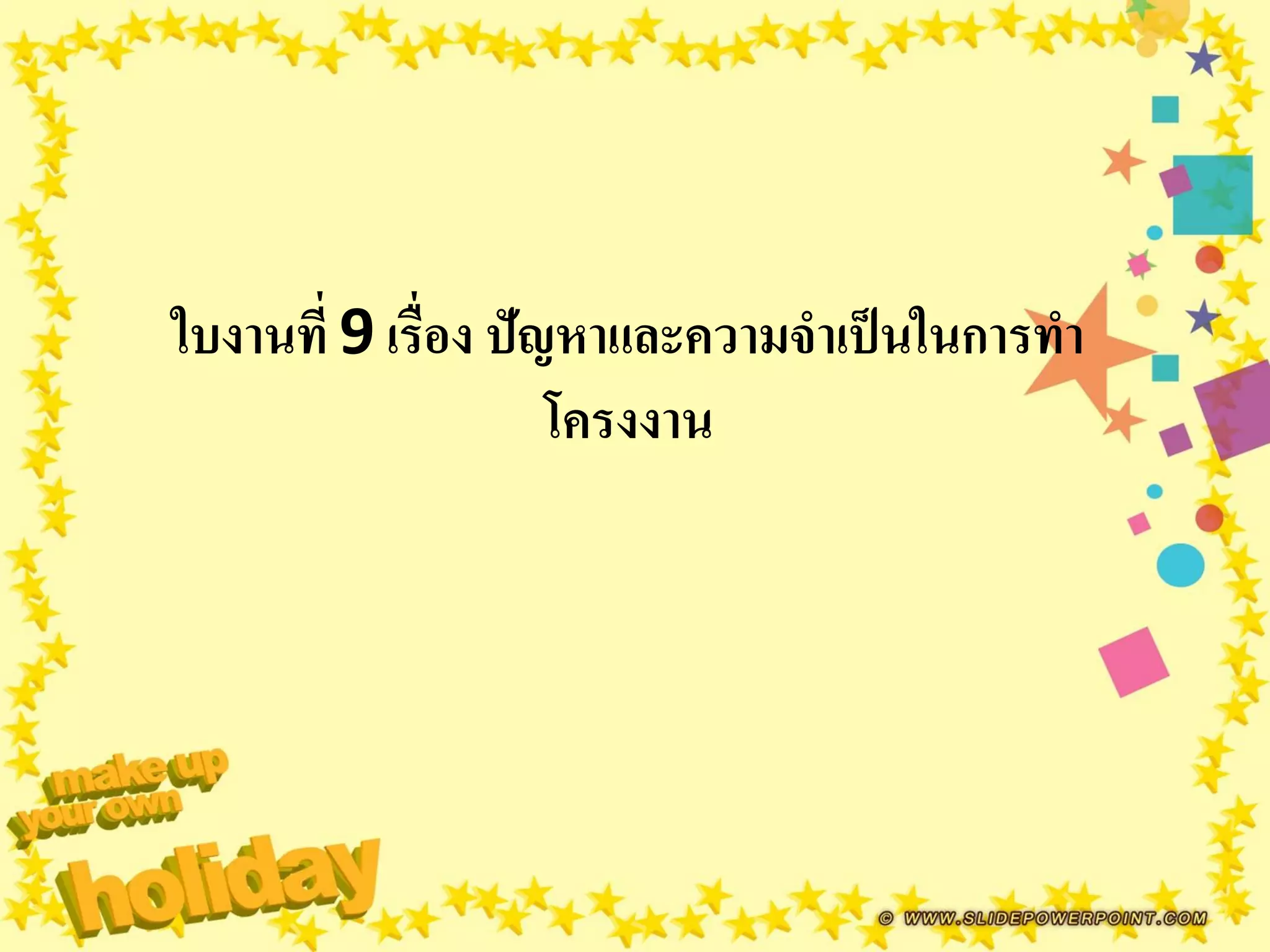 ใบงานท 9 เรื่ออง ปัญหาและความจำเป็นในการทำโครงงาน