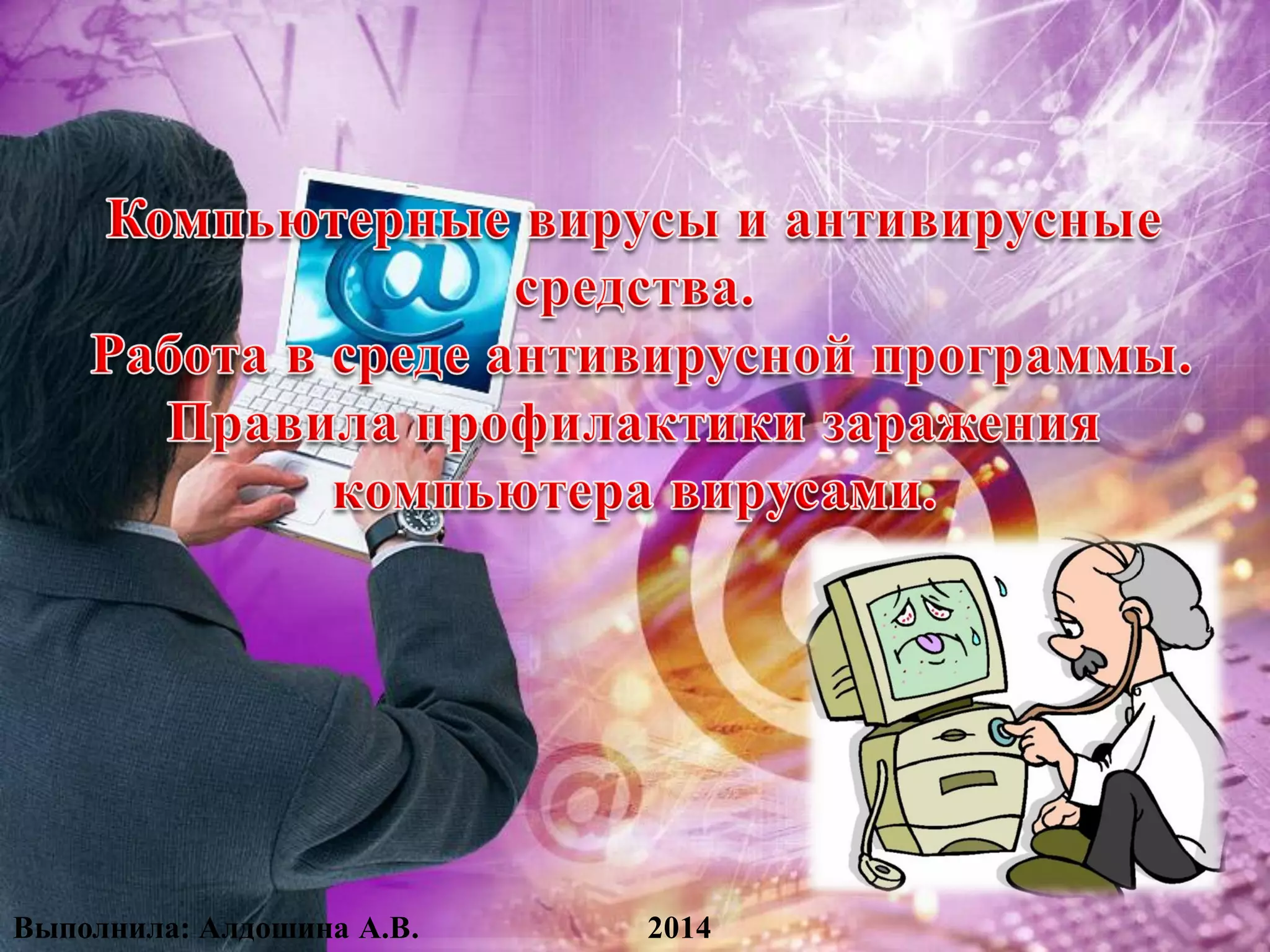 Документ описывает характеристики и классификацию компьютерных вирусов, их влияние на работу ПК и методы защиты от них. Упоминаются различные типы вирусов, включая файловые, загрузочные и троянские, а также рекомендации по выбору антивирусного программного обеспечения. Также предоставляются советы по защите компьютера, такие как использование антивирусов и резервное копирование данных.