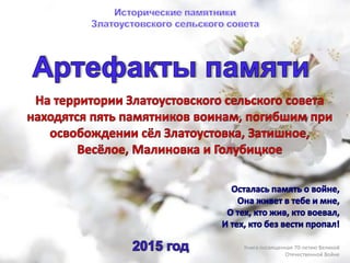 Книга посвящена 70-летию Великой Отечественной войны и подчеркивает важность сохранения памяти о тех, кто погиб в боях за свободу. В ней описываются судьбы солдат и граждан, страдавших от фашистской оккупации, а также усилия местных жителей по сохранению память о жертвах войны. Приводятся примеры памятников и мемориалов, установленных в честь погибших, и значимость мира для будущих поколений.