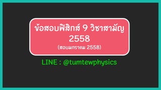 ข้อสอบฟิสิกส์ 9 วิชาสามัญ2558 LINE : @tumtewphysics