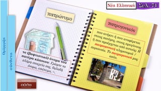 συμβουλή. Πατρικό σπίτι. β. (ως ουσ.) το