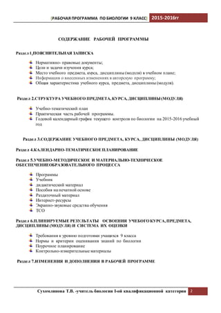 Рабочая программа по биологии для 9 классов МБОУ Матвеево-Курганская школа на 2015-2016 учебный год разработана Татьяной Васильевной Сухомлиновой. Программа основана на федеральных образовательных стандартах и включает содержание курсов, цели и задачи изучения биологии, структуру учебного предмета, а также планирование лабораторных работ и контрольных мероприятий. Объём курса составляет 68 часов с акцентом на интеграцию знаний и формирование у учащихся ответственности за природную среду.