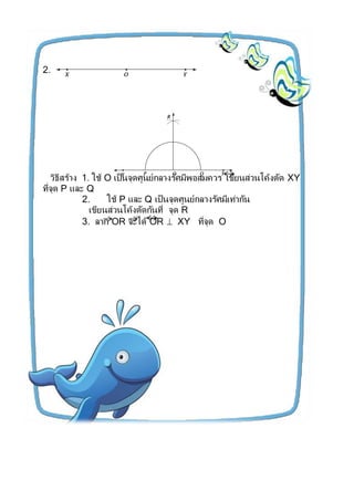 วิธีสร้าง 1. ใช้O เป็นจุดศูนย์กลางรัศมีพอสมควร เขียนส่วนโค้งตัด XY