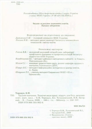 Підручник Трудове навчання (Технічні види праці) 9 клас Терещук Б.М., Туташинський В.І., Загорний В.К. Київ, "Генеза" 2009 - 160 с.