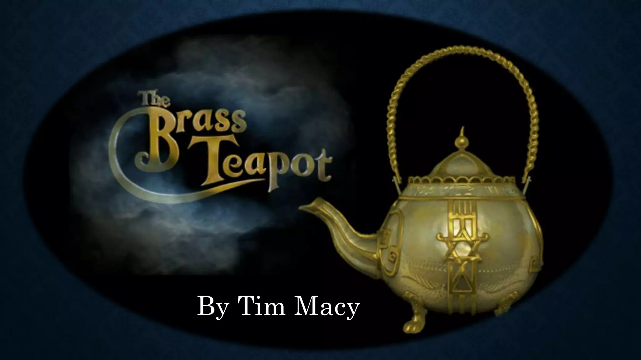 Tim Macy is an emerging author who wrote his first published work, "The Brass Teapot". He has also written plays and is currently finishing his MFA at the University of Kansas. The document provides character analyses and descriptions of plot elements for "The Brass Teapot" including the main characters of Alice and John, the setting in a small late 1900s town, and the central conflict revolving around a magical brass teapot.