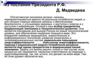 Документ рассматривает энергосбережение как стратегическую задачу для инновационного развития и безопасности России, подчеркивая необходимость повышения энергоэффективности в экономике. Описываются меры по сокращению потребления энергетических ресурсов и улучшению их использования, а также роль законодательства и программ в области энергосбережения. Также упоминается важность сотрудничества между государственными органами и бизнесом для реализации энергоэффективных проектов.