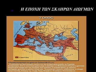 Οι πρώτοι διωγμοίΤοπικοί και περιστασιακοί Διάφοροι λόγοι: Φιλοδοξίες αυτοκρατόρων Θρησκευτικός φανατισμός Οικονομικά προβλήματα