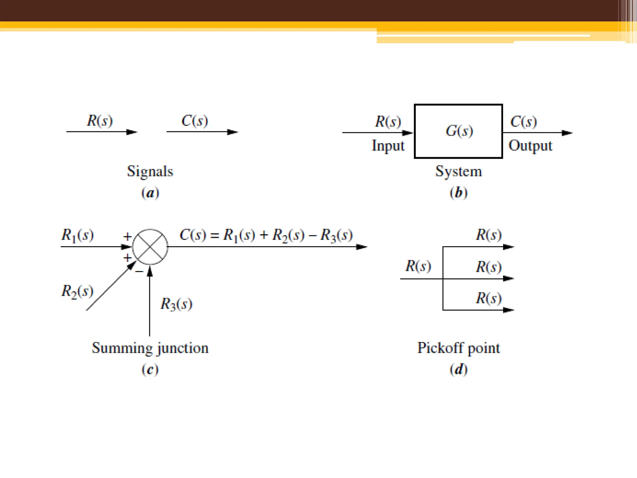 The document covers the fundamentals of block diagrams, detailing their representation of physical systems and the relationships among components. It discusses various operational components like summing junctions and take-off points, as well as reduction techniques for simplifying complicated systems, including cascade, parallel, and feedback forms. Examples illustrate how to derive transfer functions and characteristic equations from block diagrams.