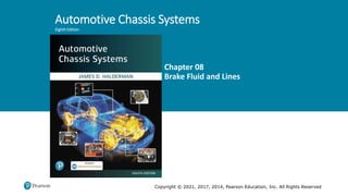 The document provides an overview of brake fluid and lines, focusing on the necessity and methods of brake bleeding in vehicles, including the need to remove trapped air for effective brake performance. It details various procedures for bleeding the brake system, such as manual, vacuum, gravity, and pressure bleeding, with step-by-step instructions for each method. Additionally, it emphasizes safety and the importance of consulting specific service information for vehicles equipped with antilock brakes (ABS) during maintenance.