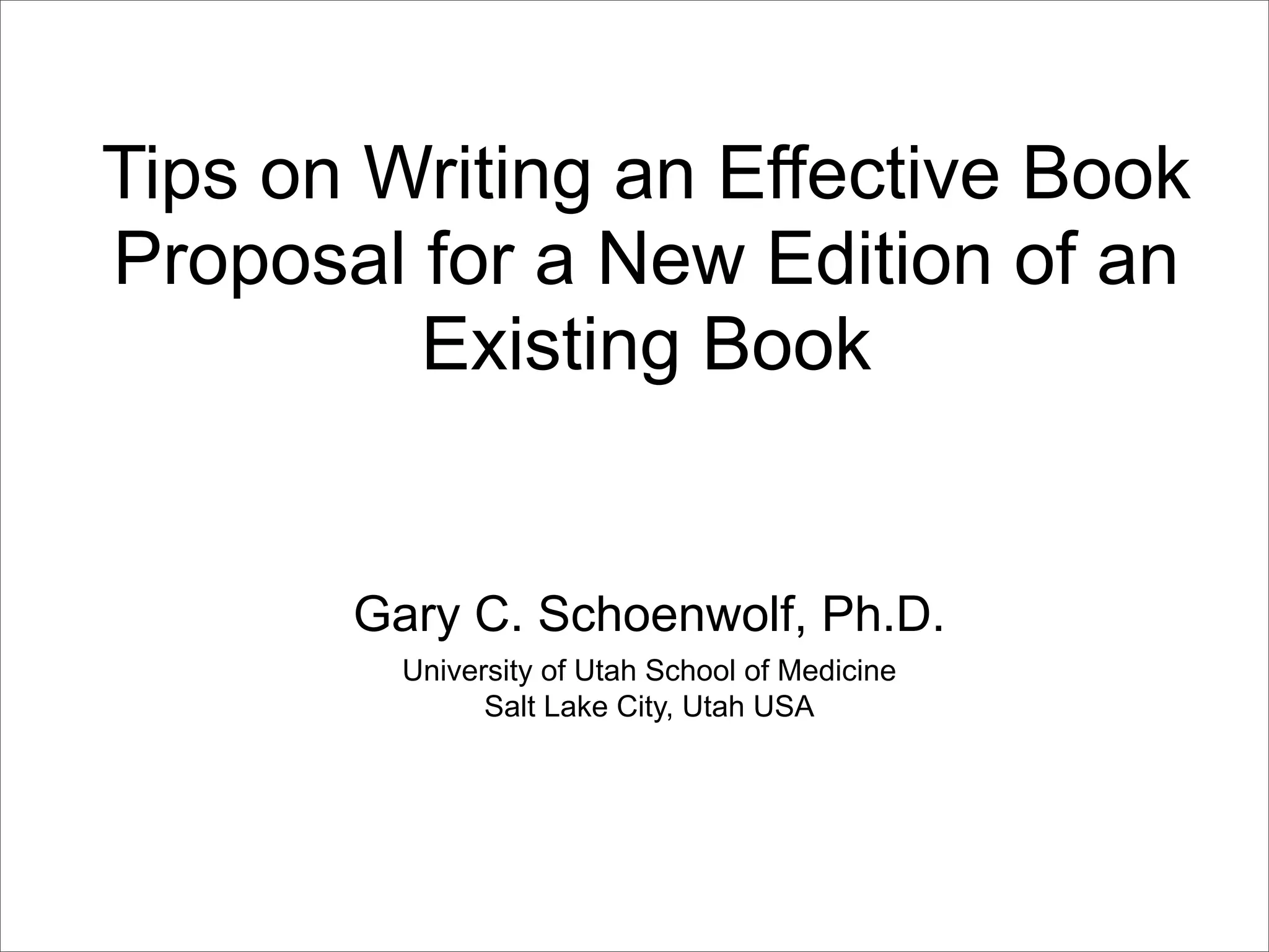 The document provides tips on writing an effective book proposal for a new edition of an existing book. It discusses convincing the publisher that there is still a market for the book if revised, demonstrating how the author would appropriately revise the book to meet unmet needs and add unique value, and showing that the author has an expertise and reputation in their field that will generate interest in the new edition. It also notes that for a book the author has already written, the proposal must demonstrate strong expected sales, as publishing a new edition is a hard sell if previous sales were not profitable. The overall message is that the proposal must convince the publisher there is potential for profit from the new edition.