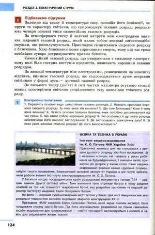 8 РОЗДІЛ 1. ЕЛЕКТРИЧНЕПОЛЕ  Експериментальне завдання Складіть план дослідження характеру взаємодії заряджених тіл. Як об’єкти для дослі- дження візьміть паперову та поліетиленову смужки розміром близько 4 × 15 см, полі- етиленову смужку розміром 2 × 3 см, підвішену на нитці, пластмасову ручку. Проведіть відповідний експеримент. Фізика та техніка в  Україні Інститут проблем машинобудування ім.  А.  М. Підгор- ного НАН України (Харків) концентрує свої зусилля на підвищенні ефективності потужного енергетичного устат- кування. Досліджуючи процеси роботи, скажімо, турбін, учені знаходять «вузькі місця», що заважають обладнанню ефективно працювати, а  потім, базуючись на законах фі- зики, винаходять засоби вирішення відповідних проблем. Так, у робочому середовищі парових турбін співробітники інституту першими у  світі виявили факт наявно­сті елек- тричних зарядів, які негативно впливають на потужність. Скориставшися «ефектом вістря» (цей ефект описаний в Енциклопедичній сторінці до розділу 1 підручника), учені винайшли методи нейтралізації «шкідливих» зарядів. Такі вдосконалені турбіни працюють, наприклад, на Харківській ТЕЦ-5 і  ТЕЦ-2 у  селищі Есхар Харківської області (див. фото). § 2. Електричне поле. Взаємодія заряджених тіл ?! Згадайте, як під час розчісування сухе й  чисте волосся «тягнеться» за пластмасовим гребінцем. Зрозуміло, що в цьому випадку відбувається електризація тертям: і волос- ся, і  гребінець стають зарядженими. А  ось чому волосся навіть на відстані повторює рух гребінця (немов кобра за дудкою індійського факіра), ви дізнаєтеся з цього пара- графа. 1 Спостерігаємо взаємодію заряджених тіл Із § 1 ви довідалися, що заряджене тіло, наприклад наелектризова- на паличка, притягує незаряджені клаптики паперу. Якщо ви проводили відповідний експеримент, то, напевне, звернули увагу на те, що клапти- ки паперу «відчували» наближення палички заздалегідь, іще до того, як паличка їх торкалася. Тобто заряджена паличка діє на інші об’єкти на  відстані! З’ясуємо, чому це відбувається. Нам знадобляться натерта графітом маленька повітряна кулька, під- вішена на  нитці, ебонітова паличка, шматок вовняної тканини, аркуш паперу та пластина з  оргскла. Наелектризуємо ебонітову паличку, потерши її об вовну. Потім доторк­немося наелектризованою паличкою до підвішеної на нитці куль- ки. Кулька отримає негативний заряд. Потремо пластину з оргскла папе- ром — пластина набуде позитивного заряду. Почнемо ­повільно підносити пластину до кульки. У міру її наближення нитка, на якій підвішена куль-