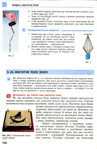 223223 Розділ 3. Магнітнеполе § 24. Постійні магніти. Магнітне поле. Лінії магнітної індукції . . . . . . . . . 138 § 25. Магнітне поле Землі. . . . . . . . . . . . . . . . . . . . . . . . . . . . . . . . . . . . . . . . . 142 § 26. Магнітна дія струму. Магнітне поле провідника зі струмом . . . . . . . . 145 § 27. Електромагніти та їх застосування. . . . . . . . . . . . . . . . . . . . . . . . . . . . . 149 Лабораторна робота № 10. . . . . . . . . . . . . . . . . . . . . . . . . . . . . . . . . . . 153 § 28. Дія магнітного поля на провідник зі струмом. Правило лівої руки. Електричні двигуни. . . . . . . . . . . . . . . . . . . . . . . . 154 § 29. Електровимірювальні прилади. Гучномовець. . . . . . . . . . . . . . . . . . . . 160 § 30. Досліди Фарадея. Явище електромагнітної індукції. . . . . . . . . . . . . . . 164 Підбиваємо підсумки розділу 3 «Магнітне поле». . . . . . . . . . . . . . . . . . . . . . 168 Завдання для самоперевірки за розділом 3 «Магнітне поле». . . . . . . . . . . . 170 Енциклопедична сторінка. . . . . . . . . . . . . . . . . . . . . . . . . . . . . . . . . . . . . . . . . 172 Розділ 4. Атомне ядро. Ядерна енергетика § 31. Атом і атомне ядро. . . . . . . . . . . . . . . . . . . . . . . . . . . . . . . . . . . . . . . . . . 174 § 32. Радіоактивне випромінювання . . . . . . . . . . . . . . . . . . . . . . . . . . . . . . . . 179 § 33. Активність радіонукліда. Правила зміщення . . . . . . . . . . . . . . . . . . . . 184 § 34. Поглинута та еквівалентна дози йонізуючого випромінювання . . . . . 189 § 35*. Отримання та використання радіоактивних ізотопів. . . . . . . . . . . . . 194 § 36*. Ланцюгова ядерна реакція. Ядерний реактор. . . . . . . . . . . . . . . . . . . 198 § 37. Екологічні проблеми атомної енергетики . . . . . . . . . . . . . . . . . . . . . . . 201 Лабораторна робота № 11. . . . . . . . . . . . . . . . . . . . . . . . . . . . . . . . . . . 205 Підбиваємо підсумки розділу 4 «Атомне ядро. Ядерна енергетика». . . . . . 208 Завдання для самоперевірки за розділом 4 «Атомне ядро. Ядерна енергетика». . . . . . . . . . . . . . . . . . . . . . . . . . . . 210 Енциклопедична сторінка. . . . . . . . . . . . . . . . . . . . . . . . . . . . . . . . . . . . . . . . . 212 Фізика та науково-технічний прогрес. . . . . . . . . . . . . . . . . . . . . . . . . . . 214 Відповіді до вправ і завдань для самоперевірки. . . . . . . . . . . . . . . . . . . . . . . 220 Алфавітний покажчик . . . . . . . . . . . . . . . . . . . . . . . . . . . . . . . . . . . . . . . . . . . 221
