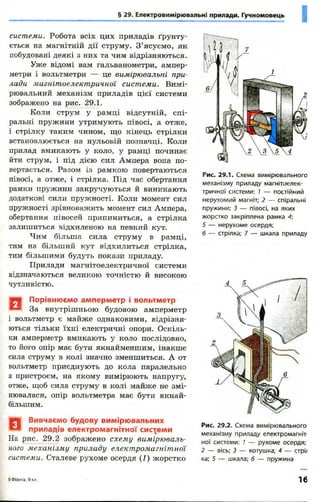 16 РОЗДІЛ 1. ЕЛЕКТРИЧНЕПОЛЕ 5 Конструюємо електроскоп і знайомимося з електрометром Дотепер для вивчання електричних явищ ви використовували підручні засоби. Однак ваших знань уже достатньо, щоб зрозуміти принцип дії приладів, які дозволяють вивчати не тільки якісні, але й кількісні характеристики заряджених тіл. Здавна для визначення наявності у тіла елек- тричного заряду використовують електроскоп. Зовнішній вигляд цього приладу подано на рис. 3.6. Пояснимо його будову. Будь-які електричні явища нерозривно пов’язані з електричним полем. У § 2 йшлося про те, що електричне поле можна виявити за відхиленням легкої зарядженої кульки. Проте кулька — це не дуже зручний індикатор, тому краще використати дві смужки тонкого папе- ру (1). Після дотику до них зарядженого тіла частина заряду потрапить на кожну смужку. Однойменно заряджені тіла відштовхуються, і тому нижні кінці паперових смужок розій- дуться в різні боки. Щоб зробити прилад якомога чутливішим, для смужок доцільно обрати найтонший папір, але тоді на точність вимірювання можуть впли- нути протяги або навіть дихання спостерігача. Для захисту індикатор розташовують у корпу- сі (3) з прозорими бічними стінками. А от щоб донести до індикатора заряд, ви- користовують провідники: до одного кінця металевого стрижня (2) прикріплюють індикатор, а другий кінець виводять назовні. Таким чином одержують можливість передавати заряд усередину корпусу. А щоб електричний заряд не стікав зі стрижня на корпус, у місці їхнього стикання встановлюють бар’єр із діелектрика (4). Нарешті, останній елемент конструкції електроскопа — кон- дуктор (5) — металева порожниста куля, яка прикріплена до верх- нього кінця стрижня. Отже, якщо до кондуктора електроскопа доторкнутися дослі- джуваним зарядженим тілом, то частина заряду цього тіла потра- пить на паперові смужки і вони розійдуться (рис. 3.7). Зверніть увагу, що кут між смужками залежить від значення одержаного ними заряду. Цей кут тим більший, чим більший одер- жаний заряд. Така залежність дозволяє модернізувати електроскоп і пристосувати його не тільки для якісних, але й для кількісних ви- мірювань. Для цього на передній стінці корпусу розміщують шкалу, яка відбиває величину переданого на електроскоп заряду, а паперові смужки замінюють легкою металевою стрілкою. Такий прилад на- зивають електрометром (рис. 3.8). Рис. 3.6. Будова електро- скопа: 1 — індикатор (папе- рові смужки); 2 — металевий стрижень; 3 — корпус; 4 — діелектрик у місці кріплення стрижня; 5 — кондуктор 5 4 1 2 3