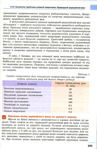 § 37. Екологічні проблеми атомної енергетики . . . . . . . . . . . . . . . . . . . . . . . 201
