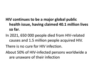 A 47-year-old woman presented with fever, cough, and difficulty breathing for one week. She was diagnosed with HIV 5 years ago but stopped treatment after one month. She now has oral thrush, tachycardia, and crackles in her lungs. Her CD4 count is low at 235 and HIV viral load is high. She is diagnosed with Pneumocystis jiroveci pneumonia, an opportunistic infection seen in advanced HIV/AIDS due to her severely compromised immune system from lack of antiretroviral treatment.