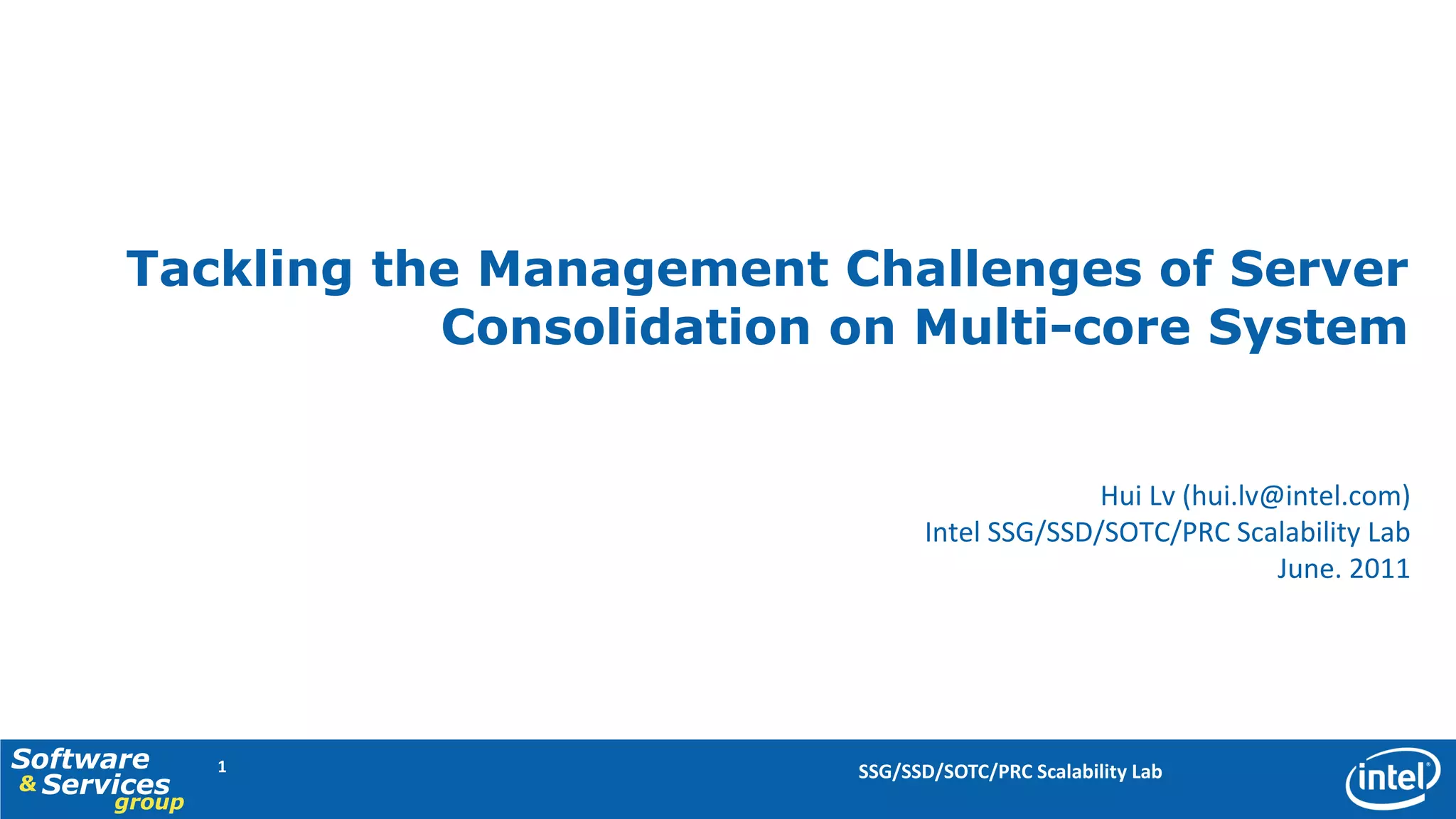 This document discusses server consolidation challenges on multi-core systems. It finds that hypervisor overhead increases significantly under high system load. Frequent context switching accounts for a large portion of hypervisor CPU cycles. Optimizing the credit scheduler to reduce context switching frequency improves performance by lowering hypervisor overhead by 22% and increasing performance per CPU utilization by 15%.
