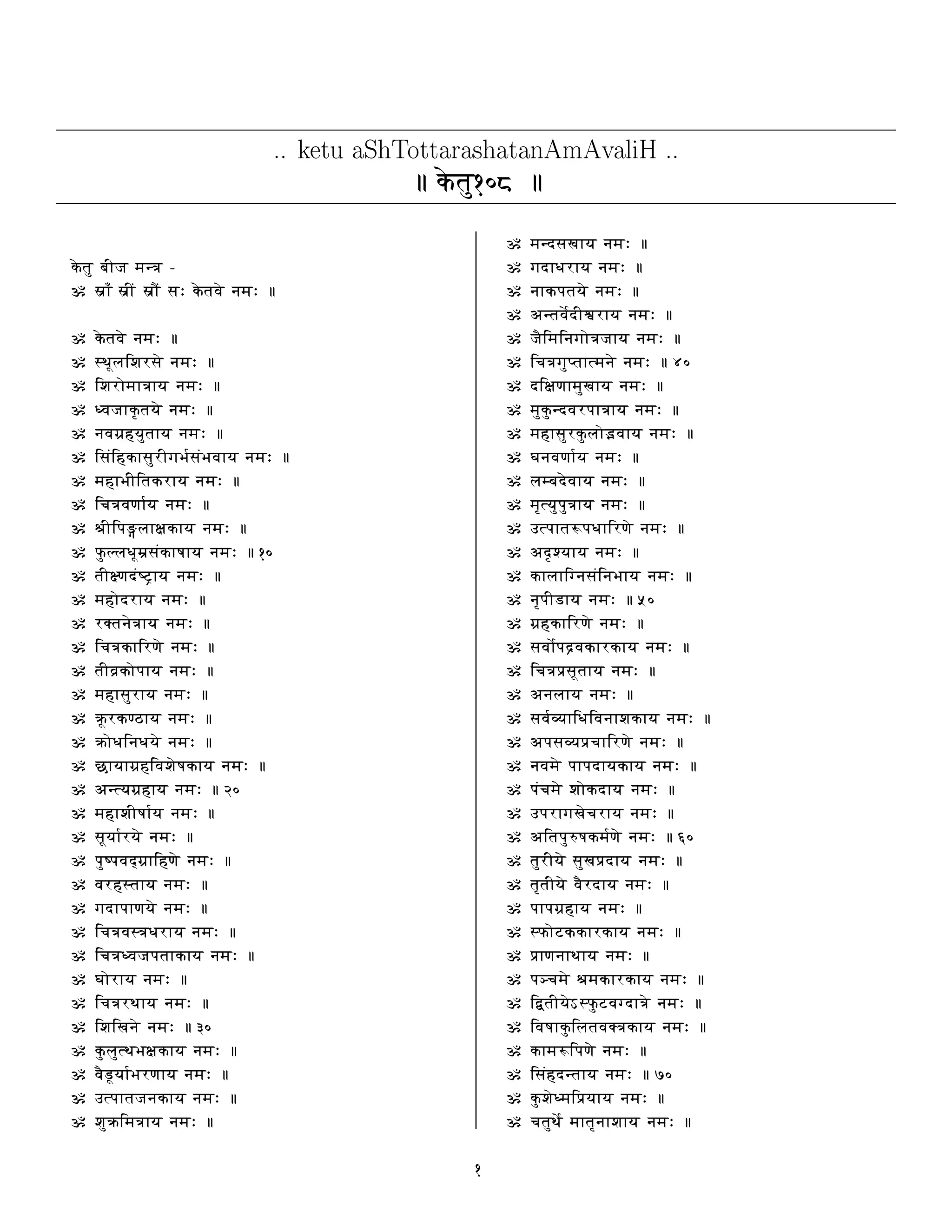 Similar to 9. ketu aṣṭatottaraśatanāmavaliḥ
