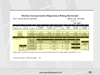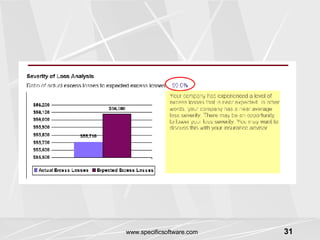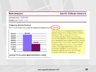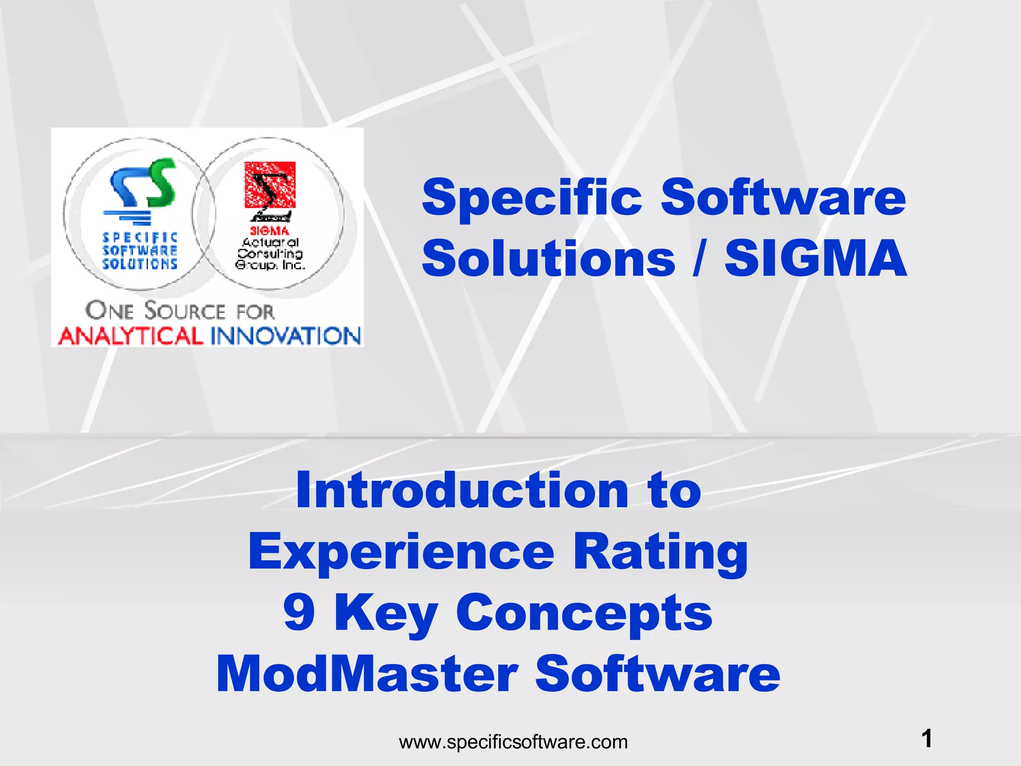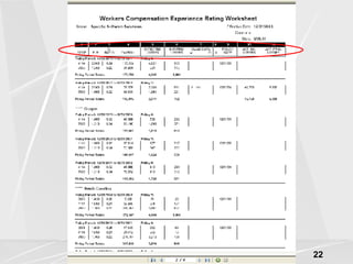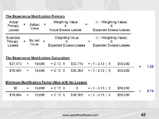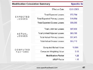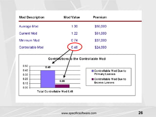 ModMaster is software that helps communicate key concepts of experience rating to clients by calculating workers' compensation modification factors and presenting reports. It makes experience rating easier to understand and anticipate changes. The document outlines nine key concepts of experience rating and how ModMaster can help explain each concept through various reports and analyses. This helps clients better understand how their losses and claims impact premiums.
