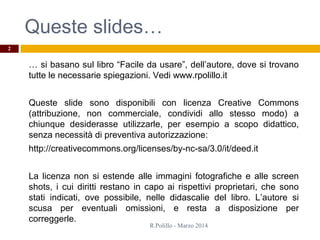 Il documento fornisce materiali didattici per un corso di interazione uomo-macchina, basandosi sul libro "facile da usare" dell'autore. Viene discusso l'uso dei dispositivi mobili, le loro funzioni e l'importanza del design responsive per ottimizzare l'esperienza utente su diverse piattaforme. La presentazione include anche esempi pratici e linee guida su come progettare interfacce efficaci per vari dispositivi.