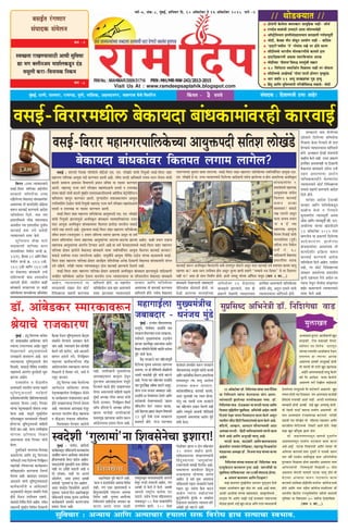 10 Dee@keäšesyej les 16 Dee@keäšesyej 2015 22222 ns Je=òehe$e ceeuekeâ, cegõkeâ, ØekeâeMekeâ, efoJeeCepeer "cee Deensj Ùeebveer Sme. Deej. efØebefšbie Øesme, iees[eTve veb. 8-9-10 Depeg&ve kebâheeGb[, Iejšve hee[e veb.2, oefnmej (hetJe&), cegbyeF&-400068 ÙesLes Úehetve ieeUe veb.56, Fbog yeeF& ÛeeU, ieCesMe veiej, mecelee veiej heesueerme mšsMeve meceesj, Deekegâueea jes[, keâebefoJeueer (hetJe&), cegbyeF&-400101 ÙesLetve ØekeâeefMele kesâues. mebheeokeâ : efoJeeCepeer "cee Deensj. cees. : 9223391809/9222739190 Deej. Sve. DeeÙe. jefpe. veb. : Sce.S.SÛe.Sce.S.Deej. 2009/31716 (meJe& vÙeeÙe cegbyeF& vÙeeÙe keâ#esle) Email :saptahikramdeep@gmail.com ÀãÍããè ¼ããäÌãÓ¾ã menÙeesie JeeoieÇmle IešveebÛee "jCeeje Deens. lÙeecegUs Me$et Øeyeue nesleerue, DeveejesiÙeeÛes efveoeve DeJeIe[ nesF&ue. cenòJeeÛÙee ÛeÛee&, yew"keâer, osJeIesJe ÙeebÛÙee "jJeuesuÙee JesUsle yeoue keâjeJes ueeieleerue. yeepeejhes"sle lÙeeletve ÛegkeâerÛes mebosMe peeT veÙesle SJe{s meebYeeUe. cees"e ueesYeele he[CÙeehes#ee efceUsue lesJe{s IesTve heg{Ûee ØeJeeme meg¤ "sJeCes meOÙeelejer ÙeesiÙe "jCeej Deens. Me$etbÛeer keâejmLeeves, DeejesiÙeeÛÙee le›eâejer, JeenveebÛee Jesie DeeheòeerÛeer ØeJesMeÉejs "¤ Mekeâleerue. meeJeOe jentve keâsuesueer keâ=leer neÛe mebj#eCeeÛee JÙeeJeneefjkeâ ceeie& jenerue. MeefveJeeheÙeËle lÙeele yeoue vekeâes. DeÛetkeâ Deboepe ÙesF&heÙeËle cees"s meenme cee$e keâše#eeves šeUe. jepekeâerÙe Øeefle‰e, JÙeeheejer meewos, keâuee-meeefnlÙeeÛes efJe<eÙe Ùeebvee Øeeflemeeo efceUJeCÙeemee"er ØeÙelve, veJes leb$e ÙeebÛee GheÙeesie DeeJeMÙekeâ "jsue. ØeeLe&vee, ØemeVelee osCeejer jenerue. menÙeesie meg¤ nesF&ue DeeefCe veJÙee ØeMveebÛeer Glheòeer heefjJeejeheemetve meg¤ nesF&ue; hejbleg efJeÛeefuele nesT vekeâe. metÙe&, yegOe Øeefle‰e meebYeeUCeejer Devegkeâtuelee osleerue. osJeIesJe, ØeJeeme, efceUkeâleerÛeer ØekeâjCes, YeeTyebokeâer Ùee mebyebOeele meOÙee lejer efveCe&Ùeelcekeâ keâ=leerÛeer IeeF&ieoer& vekeâes. MegYe heefjCeeceebÛee ueeYe Pešheš DeeefCe ngMeejerves keâ¤ve IesCes DeeJeMÙekeâ Deens. Demes Øemebie melekeâ& jentve šeUeJes ueeieleele. Meg›eâ- n<e&ue MegYeÙeesieeletve DeLe&Øeehleer, keâuee-meeefnlÙeeleues keâjej, JÙeeheejer osJeIesJe Ùeele Devehesef#ele ÙeMe efceUles. keâškeâšer, Jeeo, JeeoU Demeues Øekeâej nesT veÙesle, Ùeemee"er jefJeJeejheemetveÛe Heâòeâ keâeÙe&Yeeie meeOeCeejs leb$e mebÙeceeves GheÙeesieele DeeCee DeeefCe MeefveJeeheÙeËle Kešešeshe meg¤ "sJee. ieg¤keâ=hesves ceeie& meehe[leerue, Lees[sHeâej ÙeMe efceUsue. DeeJneveeleerue Øeyeuelee keâceer keâjCÙeeme GheÙegòeâ "jsue, lemesÛe meeceesheÛeejebveer efcešCeeNÙee ØekeâjCeebvee Kees osT vekeâe. ØeJeeme nesleerue, DeeÕeemeves efceUleerue, SsveJesUer hewmeener efceUsue, ngMeejerves lÙeeÛee GheÙeesie keâ¤ve IÙee. efve<keâejCe "mekeâe ueeietve peerJe keâemeeJeerme nesT veÙes Ùeemee"er pehetve DemeCes DeefOekeâ Ûeebieues. YeeiÙeele metÙe&, YeeiÙe oMeceeleerue yegOeYeÇceCe, jent Devegkeâtue DeeheuÙeepeJeU Deens. lesJe{s meebYeeUCÙeemee"er Ùee ieÇnebÛee GheÙeesie nesF&ue. JÙeJenejele heefjCeeceebÛee DeeOeej efceUsue. keâceer-DeefOekeâ OeeJeheUerves ÙeMe efceUJetve oslees; hejbleg cebieU, Meveer Skeâ$e Ùesle Demeleevee efceUCeeje DeeOeej lJeefjle GheÙeesieele DeeCeCes DeeJeMÙekeâ Demeles. veeskeâjer, Oeboe, jepekeâejCe, veJes keâjej ÙeebceOeerue keâesCeleerner ØekeâjCes jWieeUle "sJet vekeâe. nJeeceeveeÛee Deboepe IesTve heg{Ûeer keâ=leer keâje. mehleceeleerue metÙe& ceoleeruee DemeuÙeeves efveÙeefcele Ghe›eâce meg¤ "sJetve yeepeejhes"sleerue Øeeflecee meebYeeUlee ÙesF&ue. ogmeNÙeebJej efJeÕeeme DeeefCe DehetCe& ceeefnleer keâeÙe&keâ=leeruee De[ÛeCeerÛeer "¤ Mekeâles. melekeâ& jene. keâeÙe&Yeeie meeOeCes, ÙeMe efceUefJeCes meeshes Demeues lejer cebieU MeveerÛÙee meg¤ nesCeeNÙee menÙeesieeves lÙeele efJeIve DeeCet veÙes ÙeeÛeer keâener keâeU keâeUpeer IÙeeJeer ueeieCeej Deens. meJee&Ûes heefjCeece keâceer-DeefOekeâ ØeceeCeele efÛeblee-keâgÛebyeCee efvecee&Ce keâjCeej DemeuÙeeves keâgbYe JÙeòeâerbveer DeJeemleJe meenme, efJeÕeemeeves JÙeJenejele meOÙee lejer keâ=leer ke⤠veÙes. metÙe&, Meg›eâ Øeeflecee DeeefCe ØehebÛe ÙeebÛÙeeJejerue og<heefjCeece šeUleerue. ‘jeceefohe' meehleeefnkeâ ØelÙeskeâ mše@ueJej Debkeâ GheueyOe Deeheueer yeeleceer hee"Jee Email : saptahikramdeep@gmail.com JeeÛee oj MeefveJeejer... mebheeokeâerÙe veeieefjkeâebvee DeeJneve DeeheuÙee mecemÙee lemesÛe MeemekeâerÙe keâeÙee&ueÙeeceOÙes meJe& meeceevÙe pevelesuee nesCeeje $eeme Ùee yeeyele JeeÛee Heâes[CÙeemee"er DeeheuÙee le›eâejer DeeceÛÙee he$e JÙeJenejeÛÙee keâeÙee&ueÙeele hegjeJÙeemen hee"efJeuÙeeme. lÙeeme Øeefmeæer efoueer peeF&ue. jeceefohe heeueIej efpeune efJeYeeieerÙe keâeÙee&ueÙe : efoJeeCe iee[&ve keâes. Dee@he. new. mees. efue. Mee@he veb. 6,yeer efJebie, «eeGb[ Heäueesj, Debyee[er jes[, ieeJe-efoJeeCeceeve, JemeF& jes[ (he.), efpeune-heeueIej -401202. Mob. : 9223391809 Email : saptahikramdeep@gmail.com keâeÙe&keâejer mebheeefokeâe:meew. JewMeeueer Deensj men mebheeokeâ:ØeMeeble peeOeJe,Devegjeie heJeej Àã½ã ã䪹ã Ôã㹦ãããäÖ‡ãŠã¦ããèÊã •ãããäÖÀã¦ããè ¾ãã •ãããäÖÀã¦ãªãÀãâ¶ããè ãäªÊãñʾãã ½ã•ã‡ãìŠÀã¶ãìÔããÀ œã¹ãʾãã •ãã¦ãã¦ã. ¾ãã ½ã•ã‡ãìŠÀãÞ¾ãã Ô㦾ã¦ãñºããºã¦ãÞããè Œãã¦ãÀ•ã½ãã ÌããÞã‡ãŠãâ¶ããèÔÌã¦ã:Þ¾ãã•ãºããºãªãÀãèÌãÀ‡ãŠÀãÌã¾ããÞããè‚ããÖñ. Àã½ã ã䪹ã Ôã㹦ãããäև㊠¾ããâÞãñÌãÀ ¾ãã ºããºã¦ã ‡ãŠãñ¥ã¦ããèÖãè ‚ãããä©ãÇãŠÌãã‡ãŠã¾ãªñÍããèÀ¹ãƦ¾ãàãÌãã‚ã¹ãƦ¾ãàã•ãºããºãªãÀãè ÀãÖ¥ããÀ ¶ã